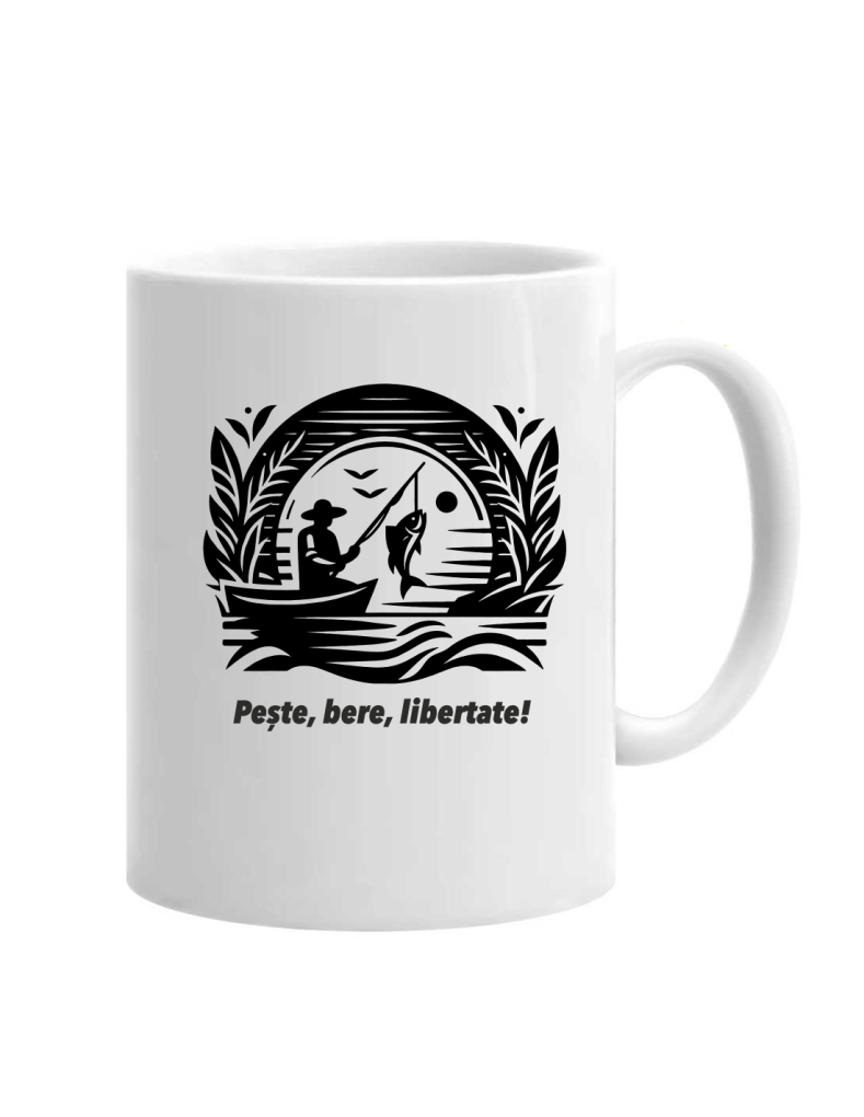 Cană pescari Pește, Bere, Libertate cod produs DRP08 este mai mult decât un simplu obiect. Este expresia unui stil de viață. Pentru cei care știu să aprecieze natura, compania bună și momentele de relaxare. Această cană vorbește despre libertatea pe care o simți când ești cu undița în mână, bucuria unei beri reci și promisiunea unei zile bune.