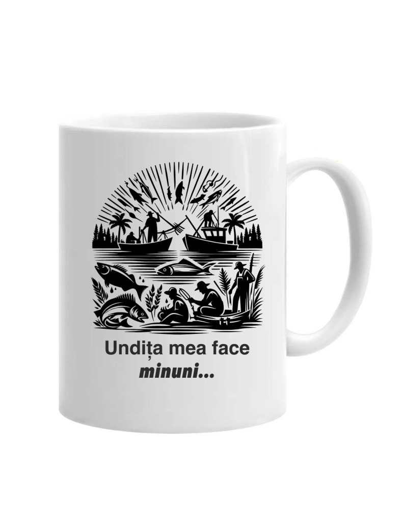 Cana Undița mea face minuni… cod produs DRP22 este un simbol al încrederii și pasiunii pentru pescuit. Fiecare pescuit devine o experiență magică când ai alături acest accesoriu care inspiră răbdare și speranță. Designul său atrăgător combină utilitatea cu mesajul optimist ce reflectă spiritul pescarului adevărat. Această cană te însoțește în fiecare dimineață, aducând un zâmbet și energia necesară pentru o zi plină de aventuri la apă.