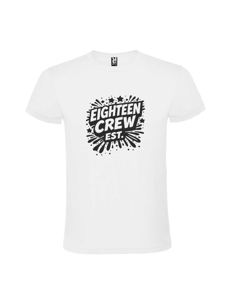 Acest tricou marchează intrarea într-o nouă etapă. Mesajul “eighteen crew est” vorbește despre prietenie și apartenență. Designul alb negru pune accent pe printul din vinil. Este tricoul creat pentru un majorat trăit alături de gașcă.