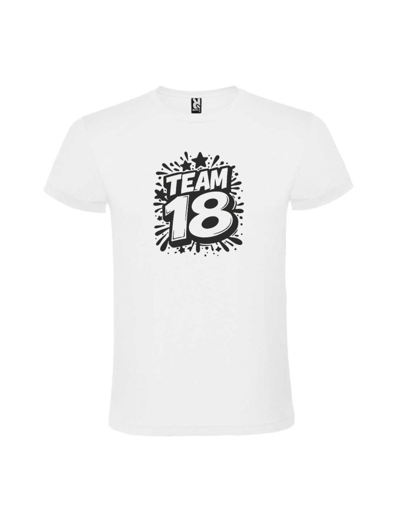 Acest tricou este creat pentru gașca de la majorat. Mesajul “team 18” vorbește despre unitate, distracție și energie. Designul alb negru pune în valoare printul din vinil. Este tricoul care leagă toată echipa într-o singură imagine.